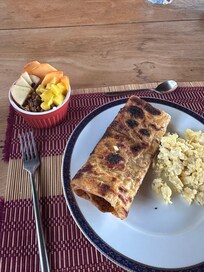 Our stay at Darna Guesthouse was amazing. Sarah and her family welcomed us in, were super helpful with recommendations and booking anything we needed, including tea and biscuits on arrival! She booked us taxis to and from the airport, a lovely Hammam and massage at a beautiful riad and recommended lots of places not to miss in Tamraght. The weather was really cold but Sarah provided a small heater so we could be nice and cosy. The room was lovely, showers are heated by the sun so were nice and hot every day apart from our last day because there was a big storm. There are only four rooms at the guest house so breakfast is personalised for you daily and is absolutely amazing! Sarah even sourced gluten free bread for my friend and Leah made us gluten free pancakes! It was nice to chat to other guests too. There is ample balcony space for each room including hammocks and sofas/benches outside and you can see the sea. The property is at the top of the hill but it’s still only a 10-15 min walk to the sea as you can cut through the town. Most nights it was really quiet and chilled although there were some noisy neighbours on NYE but that’s to be expected. My friend joined me half way through the week and Sarah offered to have our room cleaned and fresh towels given mid-week for when my friend arrived which was lovely. Thank you Sarah, Youssef and Luna - I hope we’ll be back!