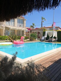 Sade Alacati Hotel sits in the heart of charming Alaçatı, offering a perfect base for relaxation. Guests enjoy convenient on-site dining for lunch and dinner, a refreshing swimming pool, and practical amenities like free self parking and express check-in and check-out services.