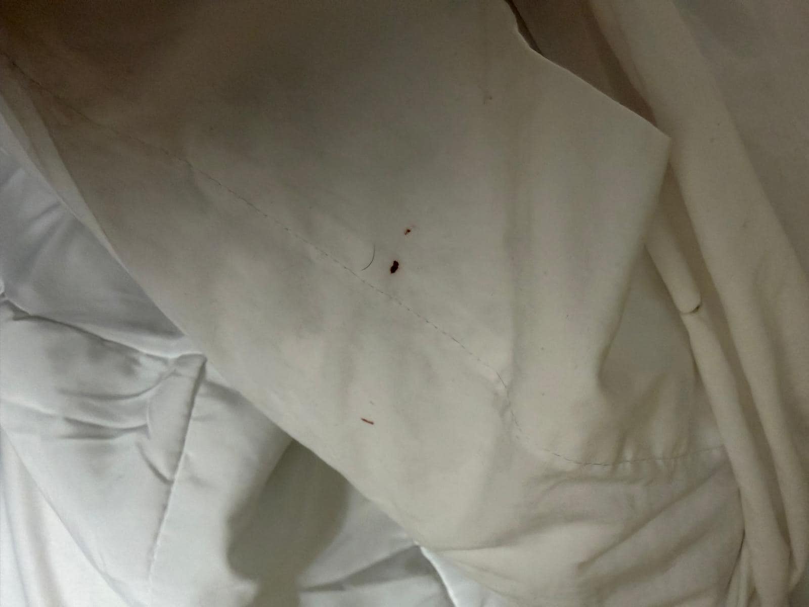 The room was dirty, the bed had blood stains and bed bugs. I arrived on Wednesday night—technically Thursday around 2 AM—and since the hotel was sold out, they couldn’t move me to another room.