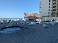 The continental breakfast was very limited, offering only basic items like small muffins, granola bars, or applesauce, though the coffee was good. The hot tub worked great, even in cooler weather, and the beachfront location was excellent.