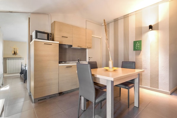 Dapur kecil, lemari es, dan microwave
