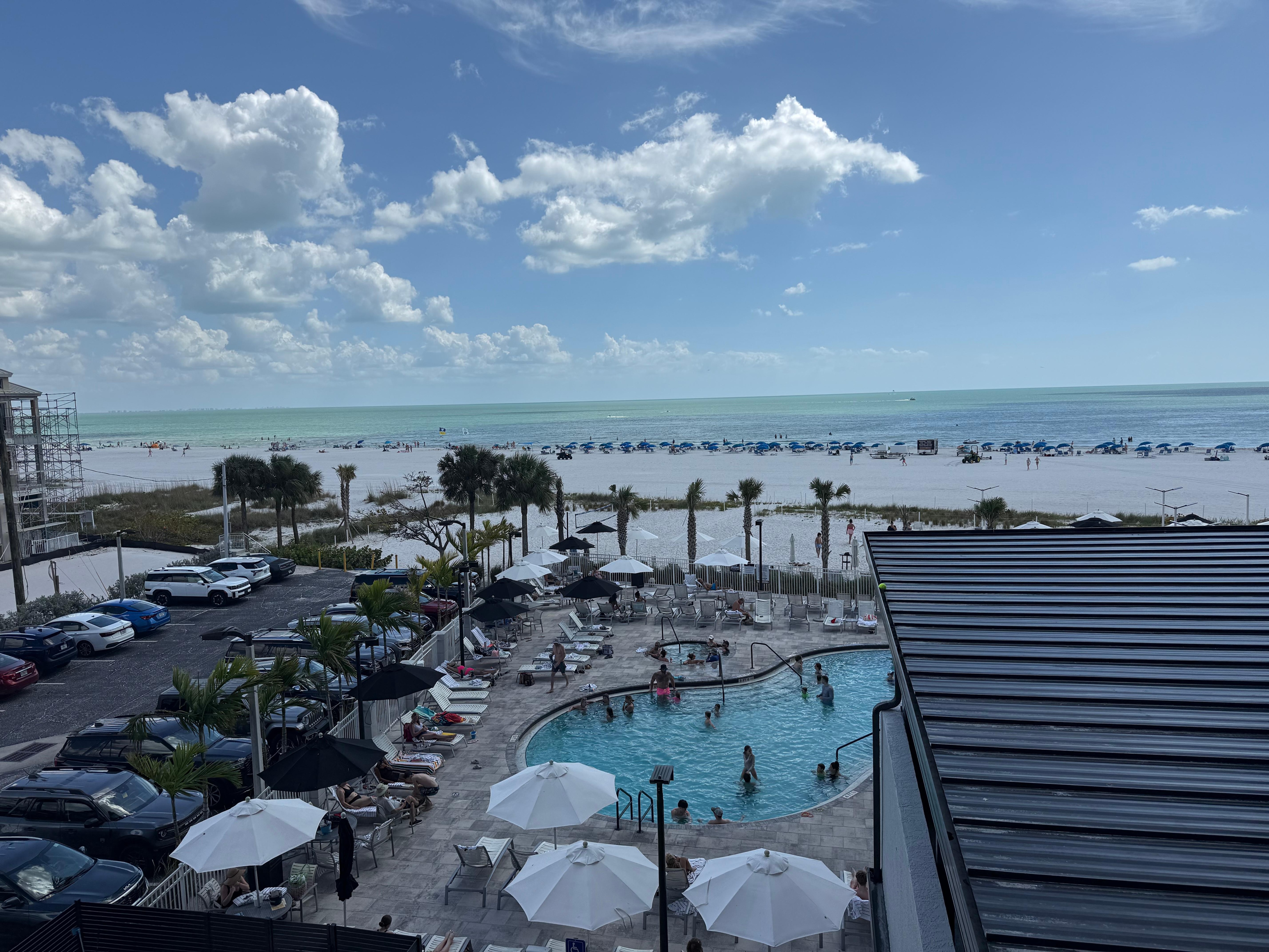 Room was spacious and clean. The bed was super comfortable, one of the nicest I've slept on at a hotel. The mini kitchen was great to put leftovers. The resort was next to the beach so that makes the getting there very convenient. The resort is located about a 10 min walk to the downtown Fort Myers Beach. The Coste restaurant was excellent. One of the nice perks of staying here was the fact that each room gets a umbrella and 2 lounger everyday. Overall, very happy with the stay and would definitely come back.