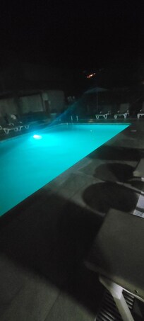 Yes, this property has an outdoor pool. Pool access is from 9 AM to 7 PM.