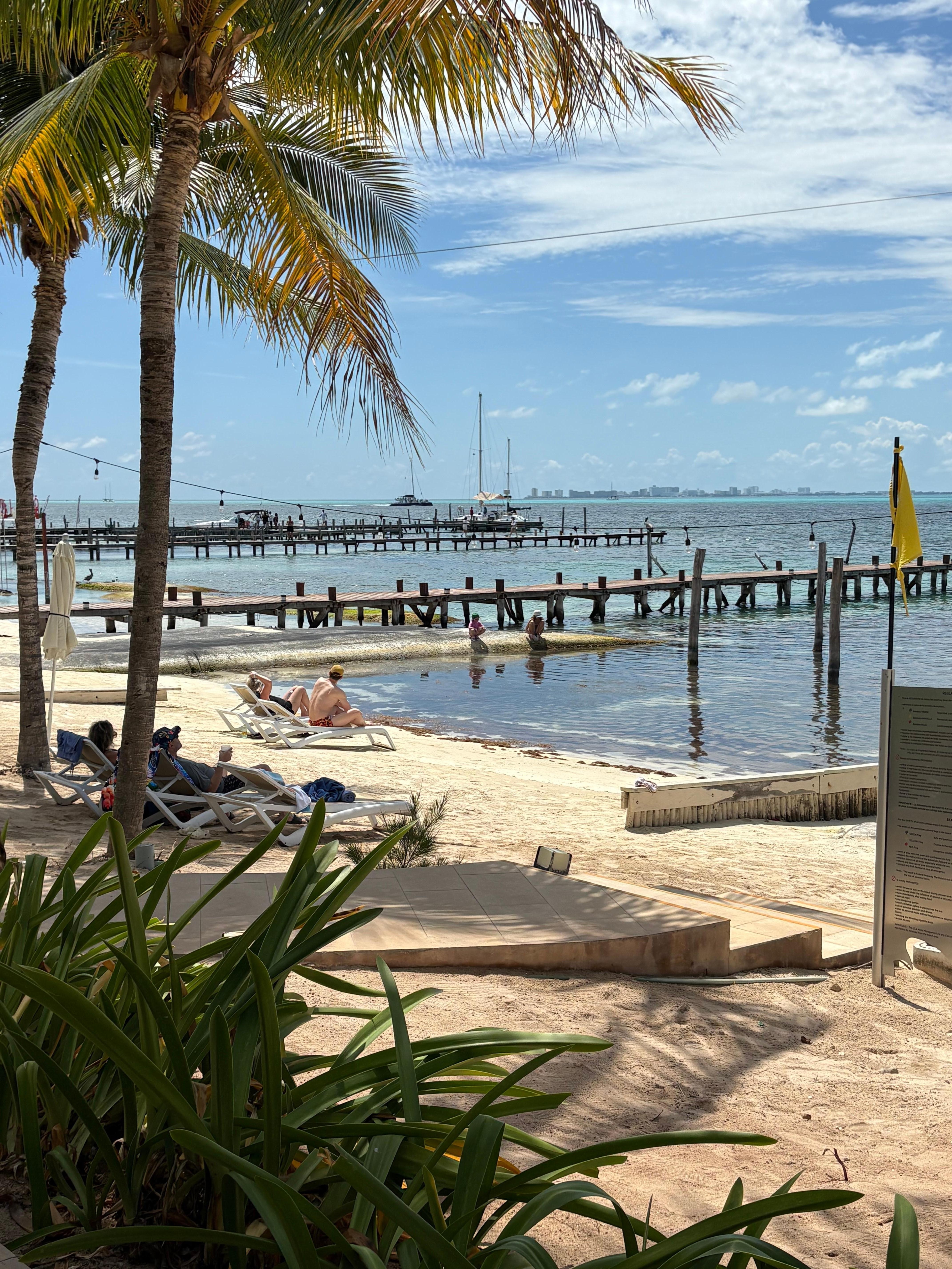 The beach and the water are disappointing, the weeds need to be removed and more white sand please.