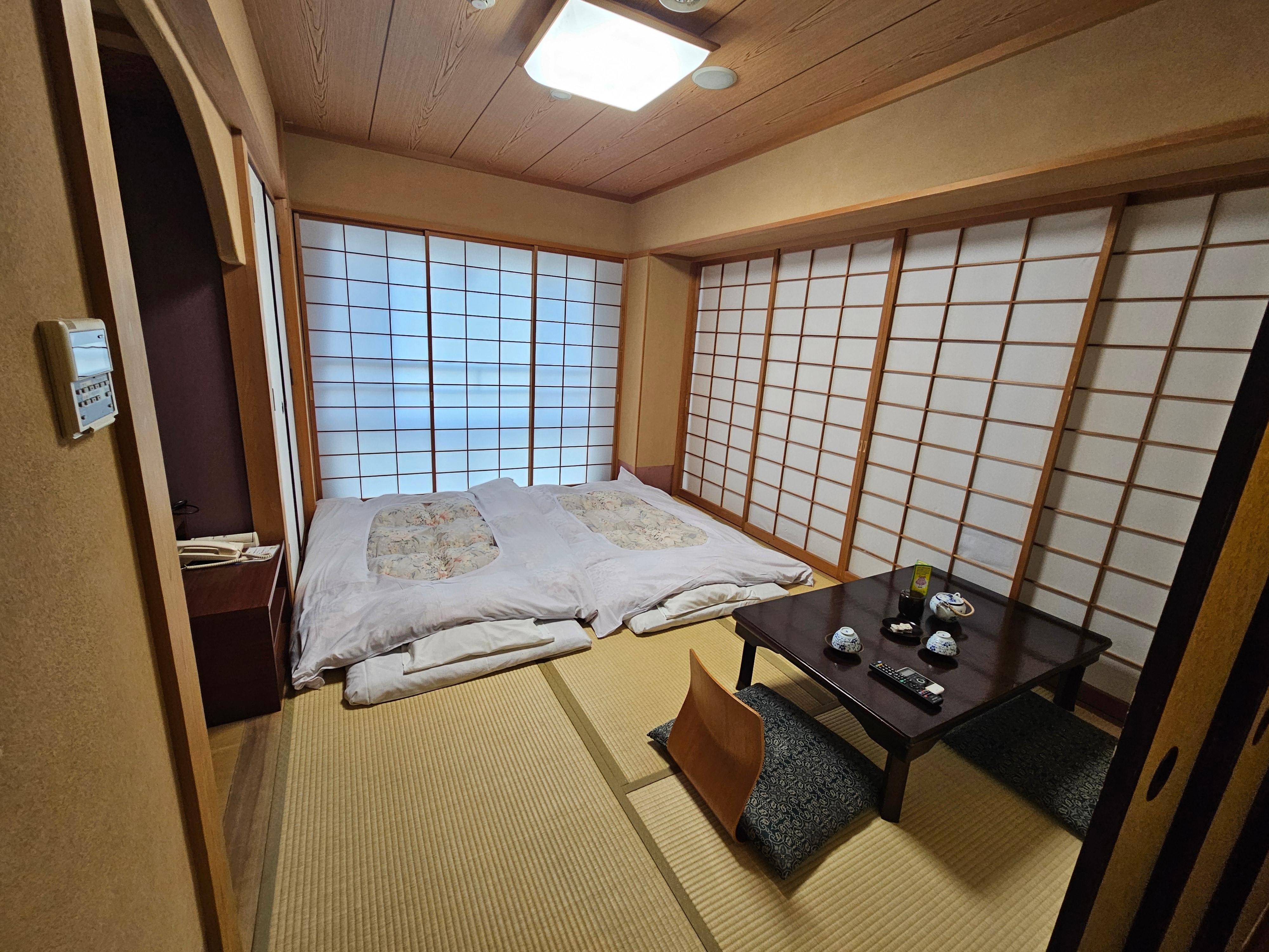 This is a place for people looking for a Japanese Ryokan experience. You sleep on a thin futon on a tatami mat floor, and the room is pretty spartan. That said, the staff is very helpful and kind and while the place could use some updating (especially the door & lock to the rooms and the number and location of plugs), this was a very pleasant stay.