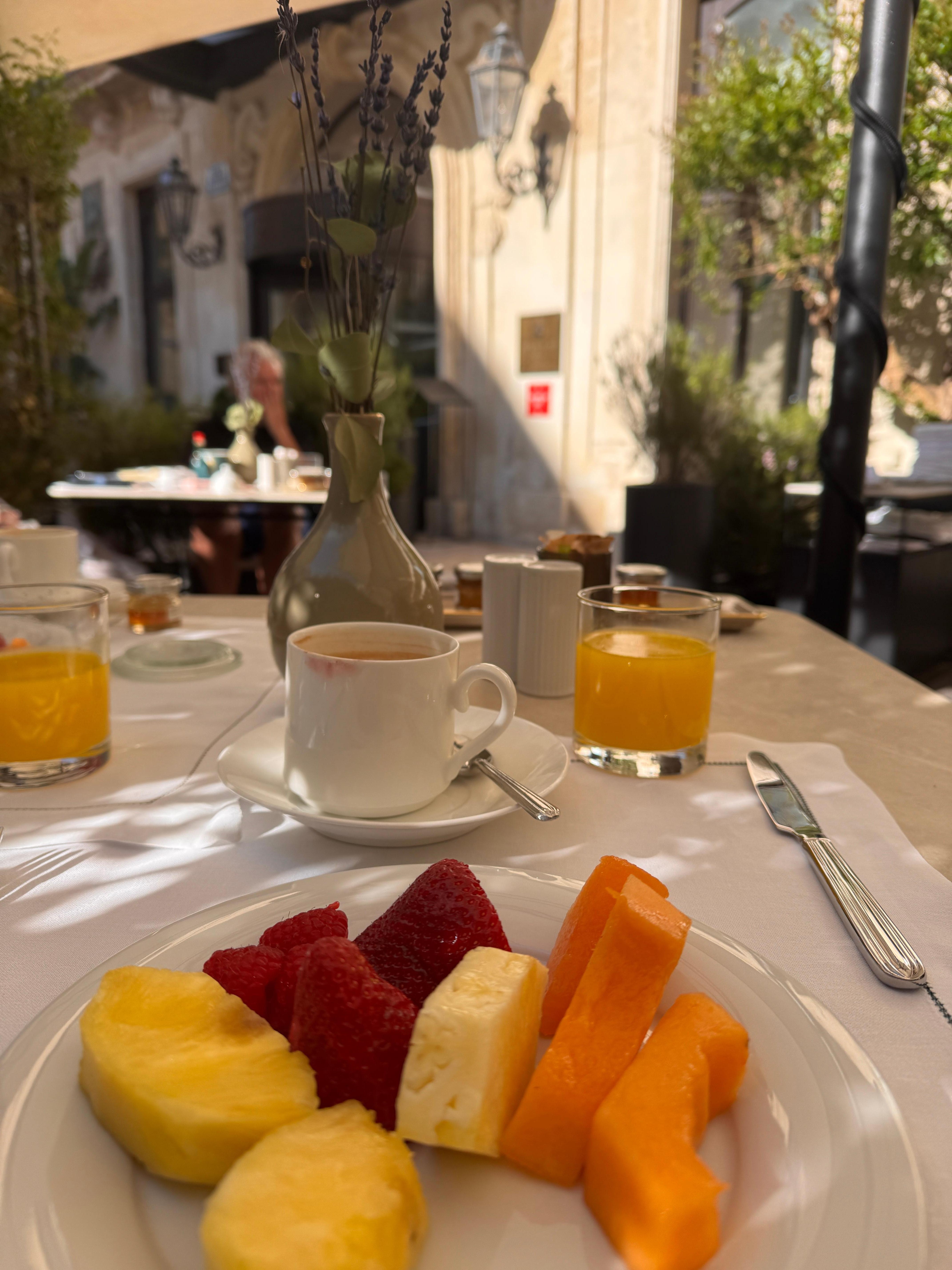 Everything was beautiful. This was a 16 th century palace converted into a hotel in 1997. Totally amazing. The best breakfast I’ve ever had at a hotel. Plush, lush, extravagant, and phenomenal. In the best location. A phenomenal experience.