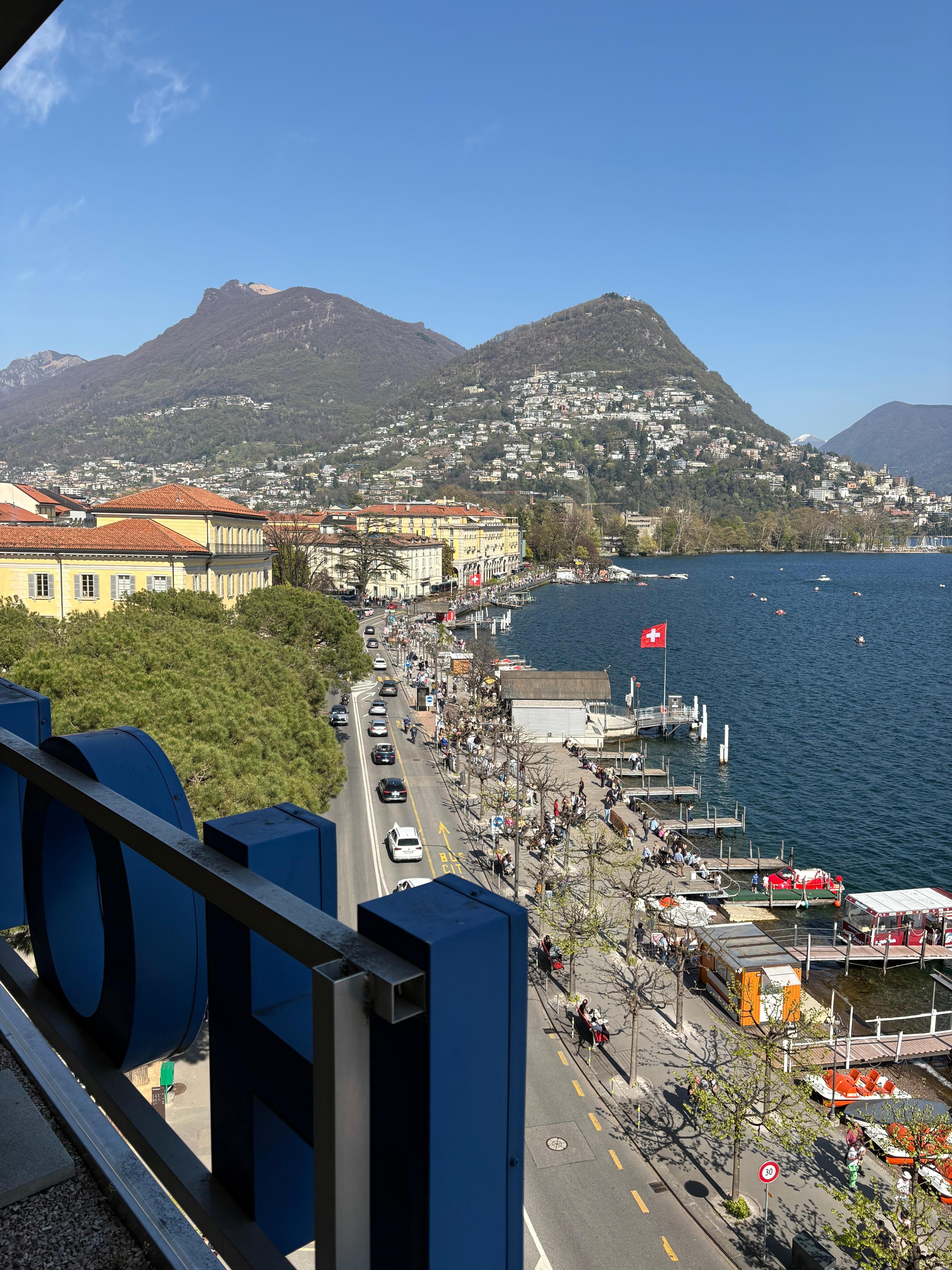 Hotel maravilhoso, vista para o lago belíssimo. Quartos grandes para 3 pessoas com espaço para as malas, camas confortáveis e um banheiro bem espaçoso com banheira e chuveiro separados, o que não é comum na Europa. Café da manhã dispensa comentários, tudo do bom e do melhor. Nos deliciamos e curtimos muito a estadia nesse hotel em Lugano além de ser próximo de tudo. Recomendamos de olhos fechados