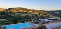 Yes, this property has a seasonal outdoor pool and a children's pool. Pool access is from 9:00 AM to 6:30 PM.