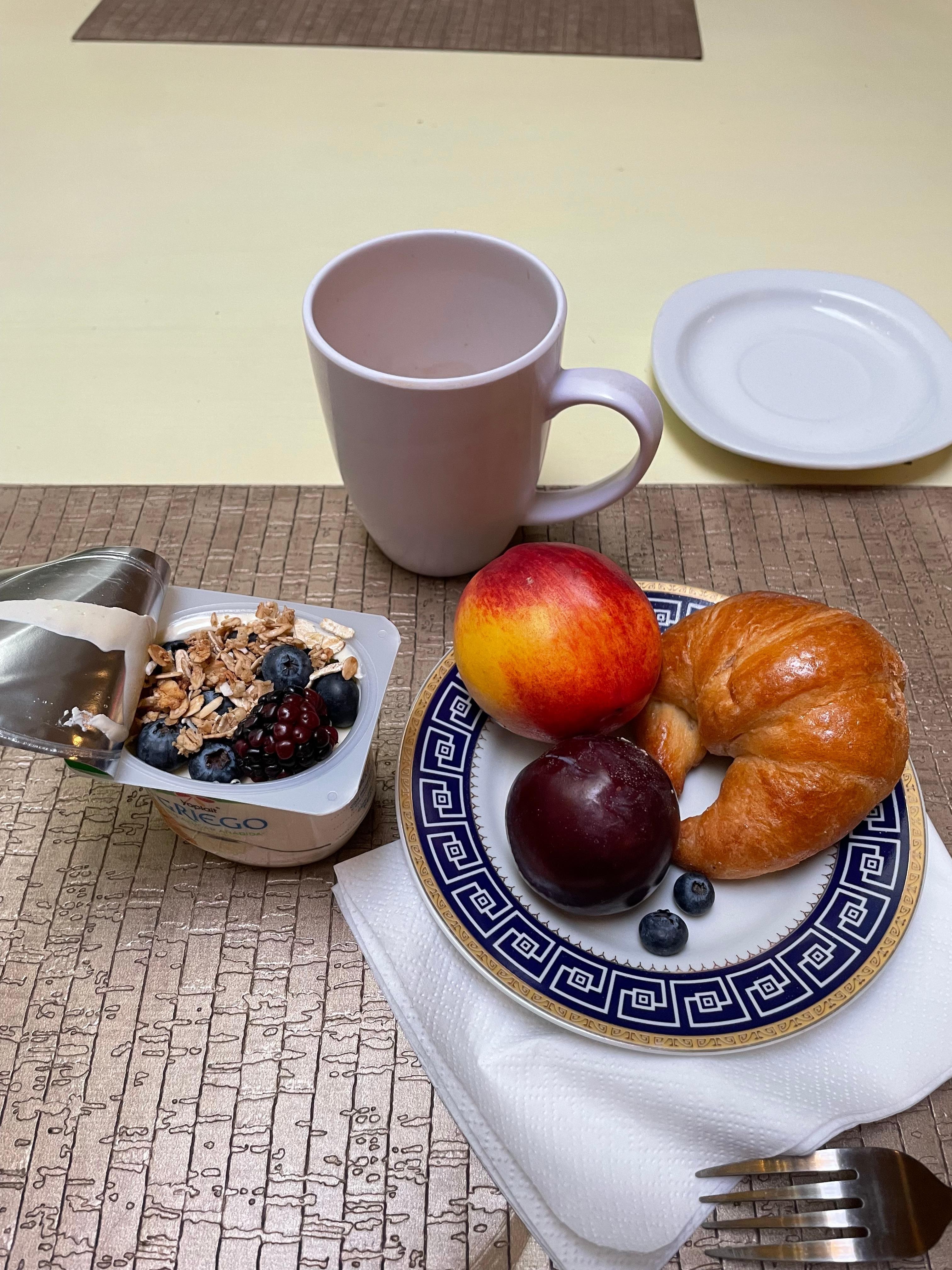 Pros: great location, elevator, wonderful cooked to order breakfast, comfortable bed.