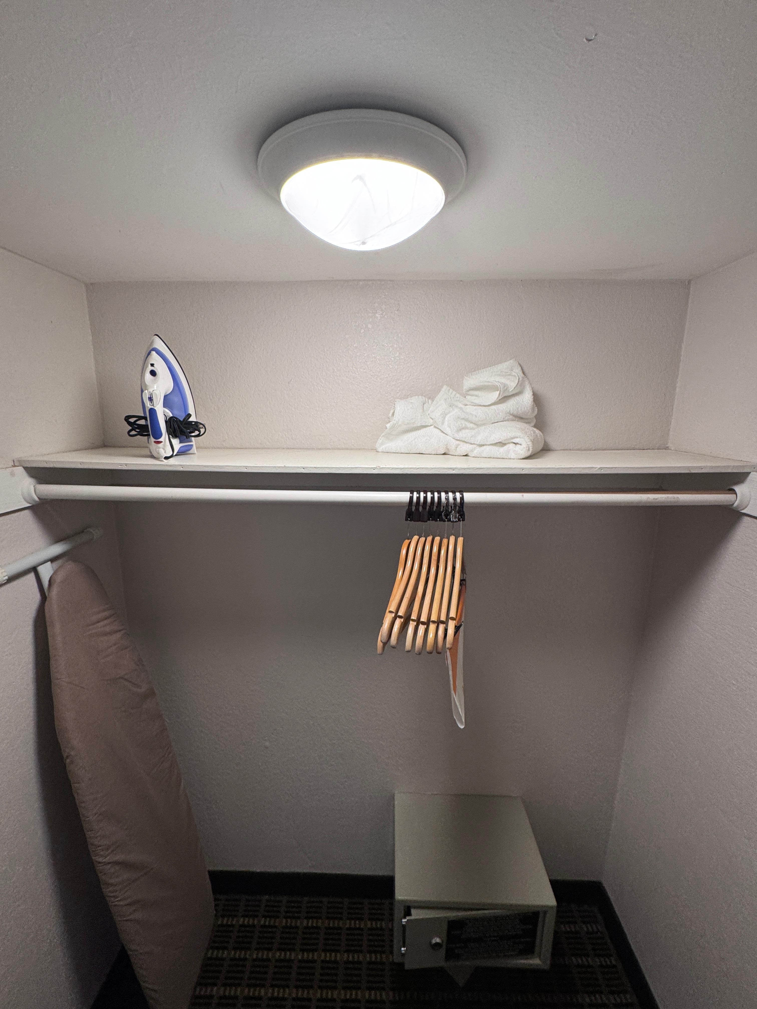 Clean room, all u need. Microwave, coffee,iron and board, hair dryer. Love it. Gustavo staff was the best