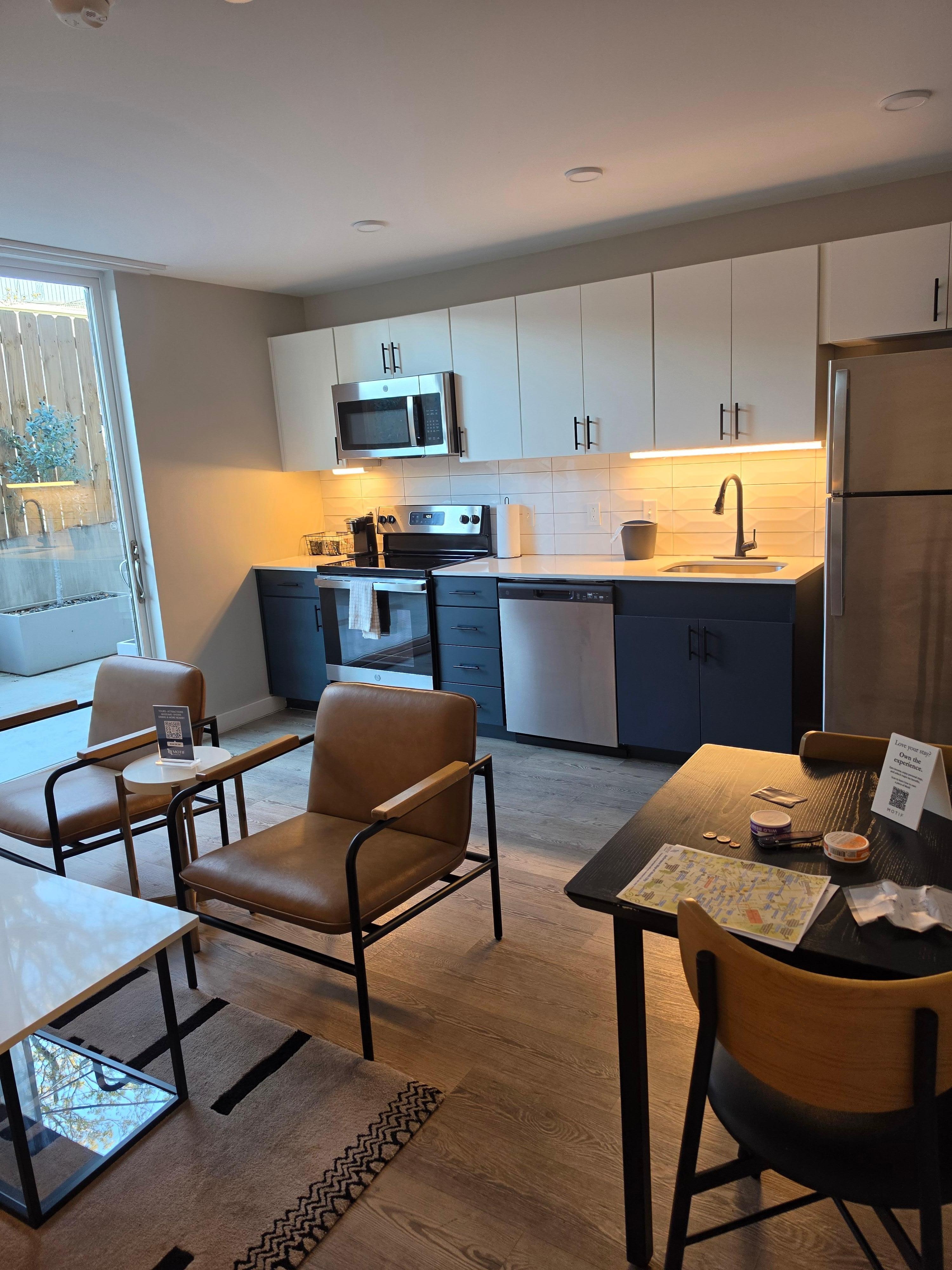 We were very happy with our stay at Motif Music Row. We had a 3 bedroom with a full kitchen and living room. We had everything we needed. I would highly recommend Motif.