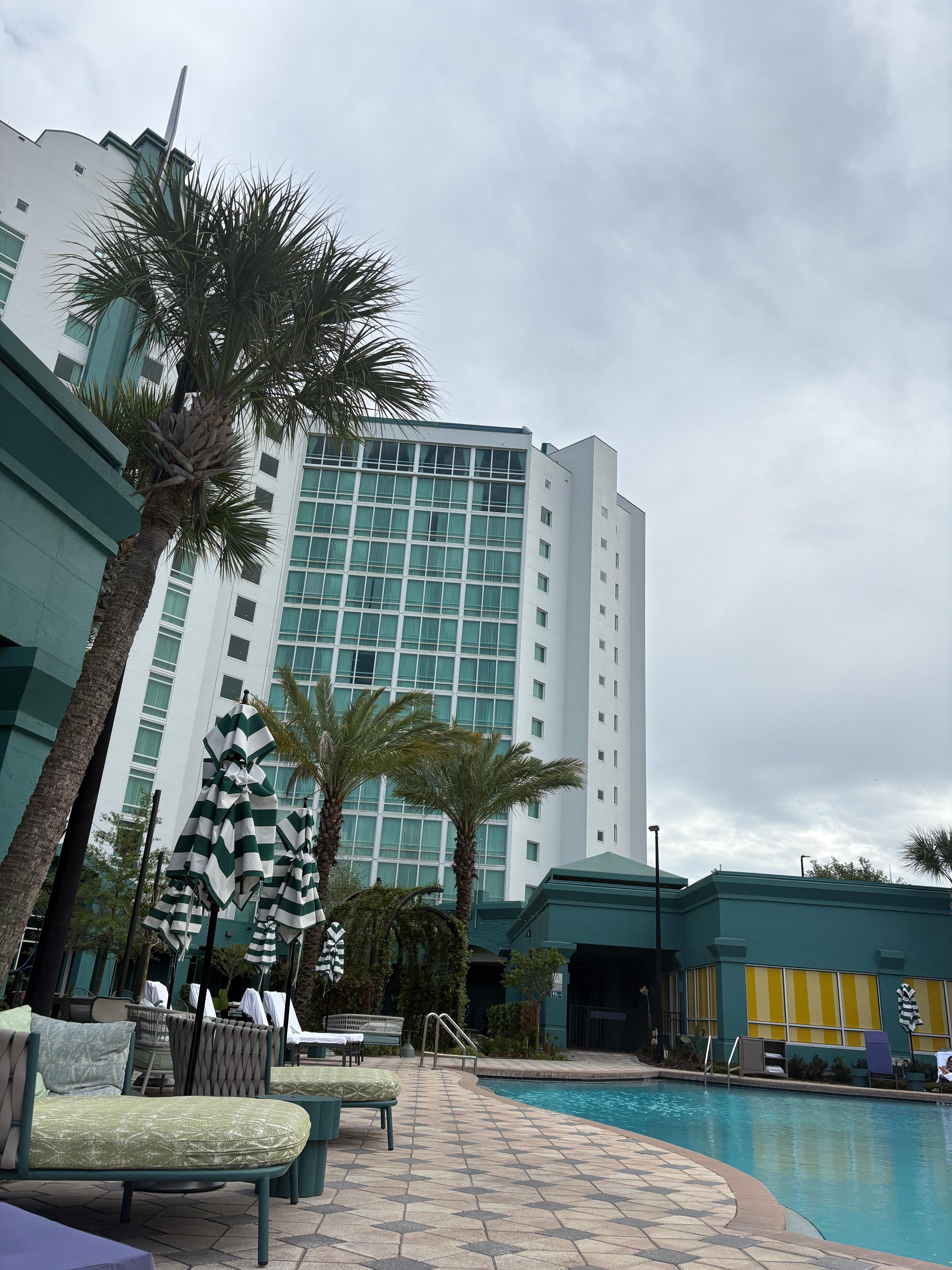 Stayed for one night on a Saturday. Staff was friendly. We did a regular check out for 11am but housekeeping came knocking around 10 to see when we would be out. Ice machine and water on our floor didn’t work, and there weren’t any games in the game room. We didn’t spend any time out at the pool or bars/restaurants. The hotel was easy to find and close to I-Drive.