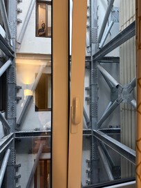 A lift, a TV in reception and a vending machine
