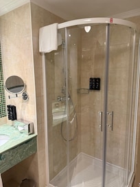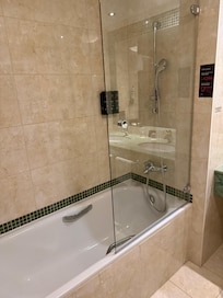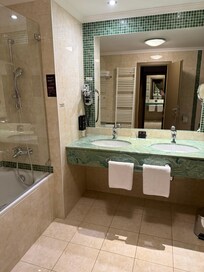 We had a junior suite as it was a very good price. Very large room and a bathroom with a bath and two showers. Double sink also. The sitting area is window seats overlooking the city or river. They were actually very comfy and nice to watch the world go by. The room was extremely clean and had a coffee machine and free mini bar that was replaced each day. Only negative (if I had to find one) was a slight rip in the curtain of the room but that can only be seen when you draw the curtain. It’s a lovely hotel and we will definitely use again if we come to Prague again. Good value for money.
