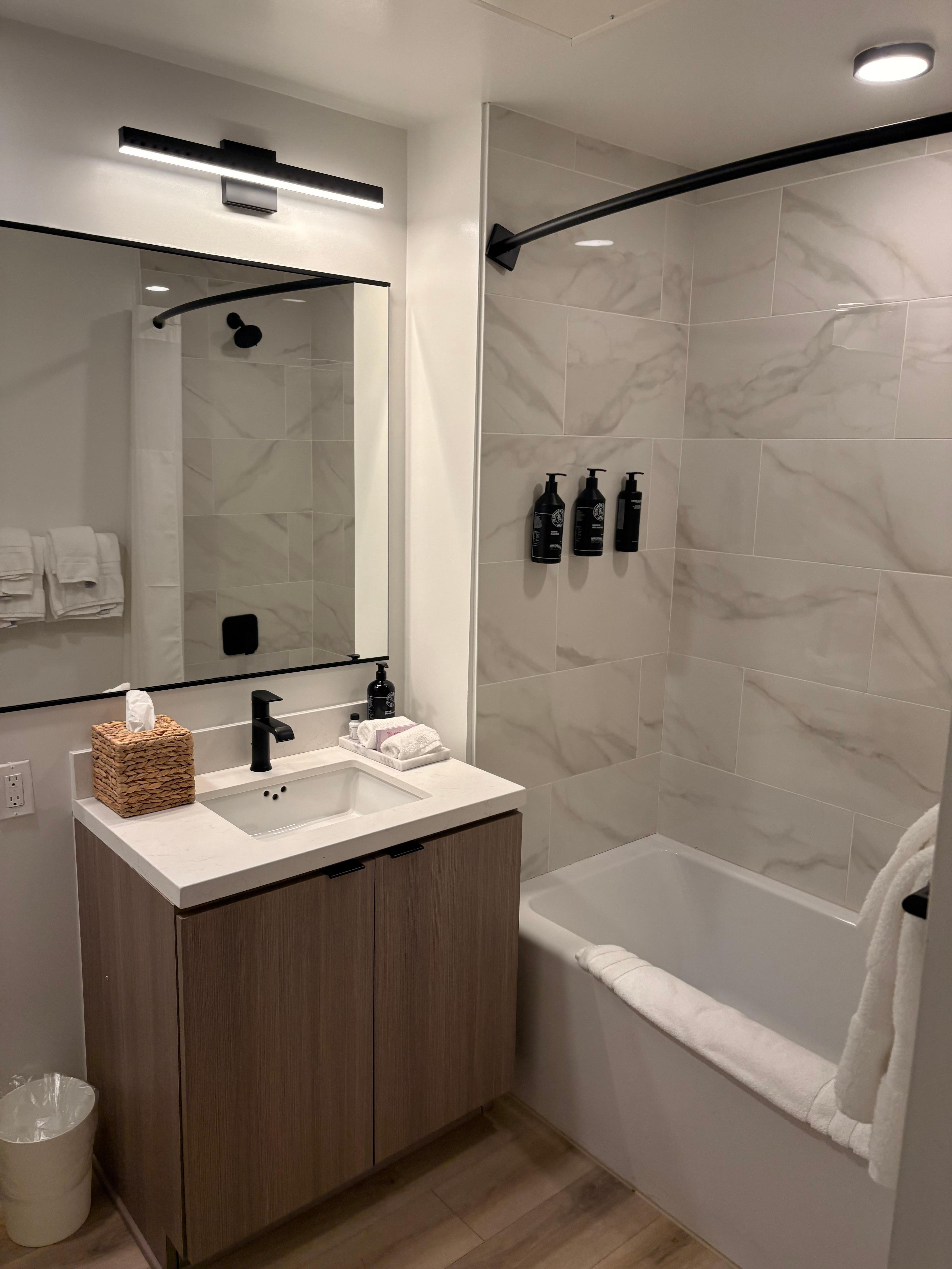 Sentral Gaslamp Quarter offers 131 air-conditioned accommodations with washers/dryers and complimentary bottles of water. Pillowtop beds feature premium bedding. 55-inch flat-screen televisions come with cable channels and Netflix. Accommodation at this 4-star hotel has kitchens with full-sized fridge/freezers, stovetops, microwaves and coffee/tea makers. Bathrooms include a combined bath/shower unit.