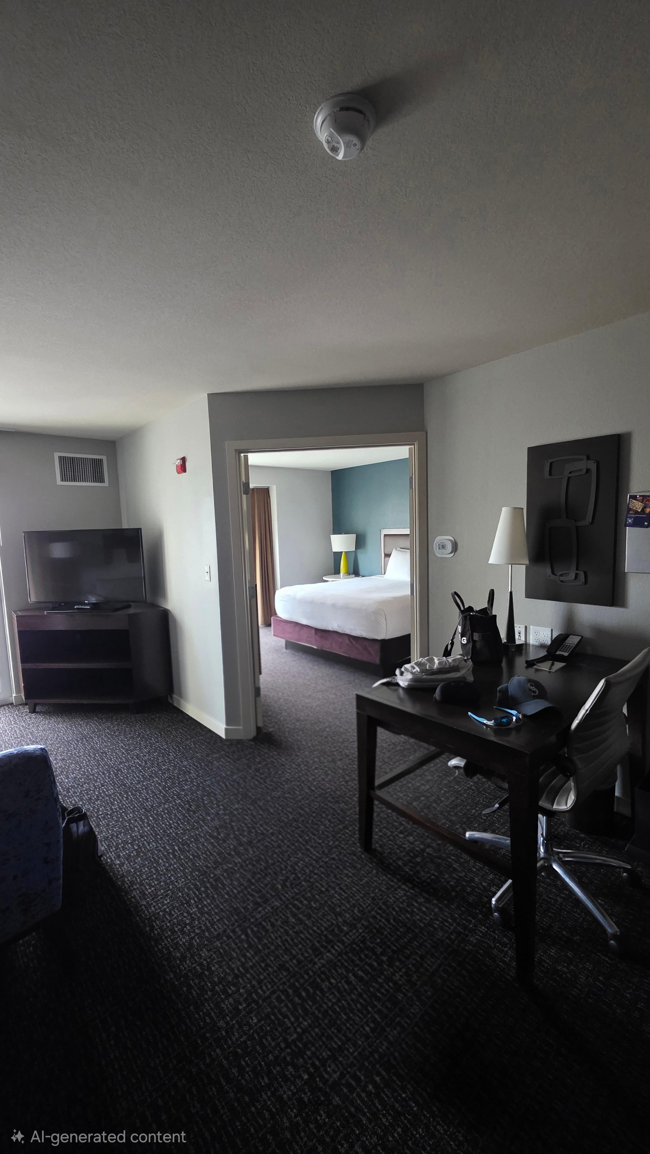 This hotel is really nice, located in a nice neighborhood and walking distance to everything. Parking across the hotel is also free and very convenient. At the back of the hotel, there is a small park where you can run or walk along the river. Our room is fancy, clean and huge. It has our own private king size bedroom a receiving area with pull out couch, study area, with full size fridge with a dishwasher and a stove. It's like a small apartment with balcony view. The bed is comfortable and we had a great sleep. Although, their AC when it starts to blow--it's very cold, and once it stops, you start to feel warm. But it doesn't really bother us, it's just weird.The staff are also helpful, friendly and the breakfast is just superb! Hot with all the continental choices.We also ate at the Hbar for our 2 dinner stay, and the prices are decent and the food taste excellent. Pool is big enough, but I wish they have a hot tub for adults. I also used their gym. Nothing fancy, but they have what you need like the treadmill, free weights and stationary bikes. They have a water station inside the gym so no need to buy water bottles. Overall, We will definitely come back here for a weekend stay.