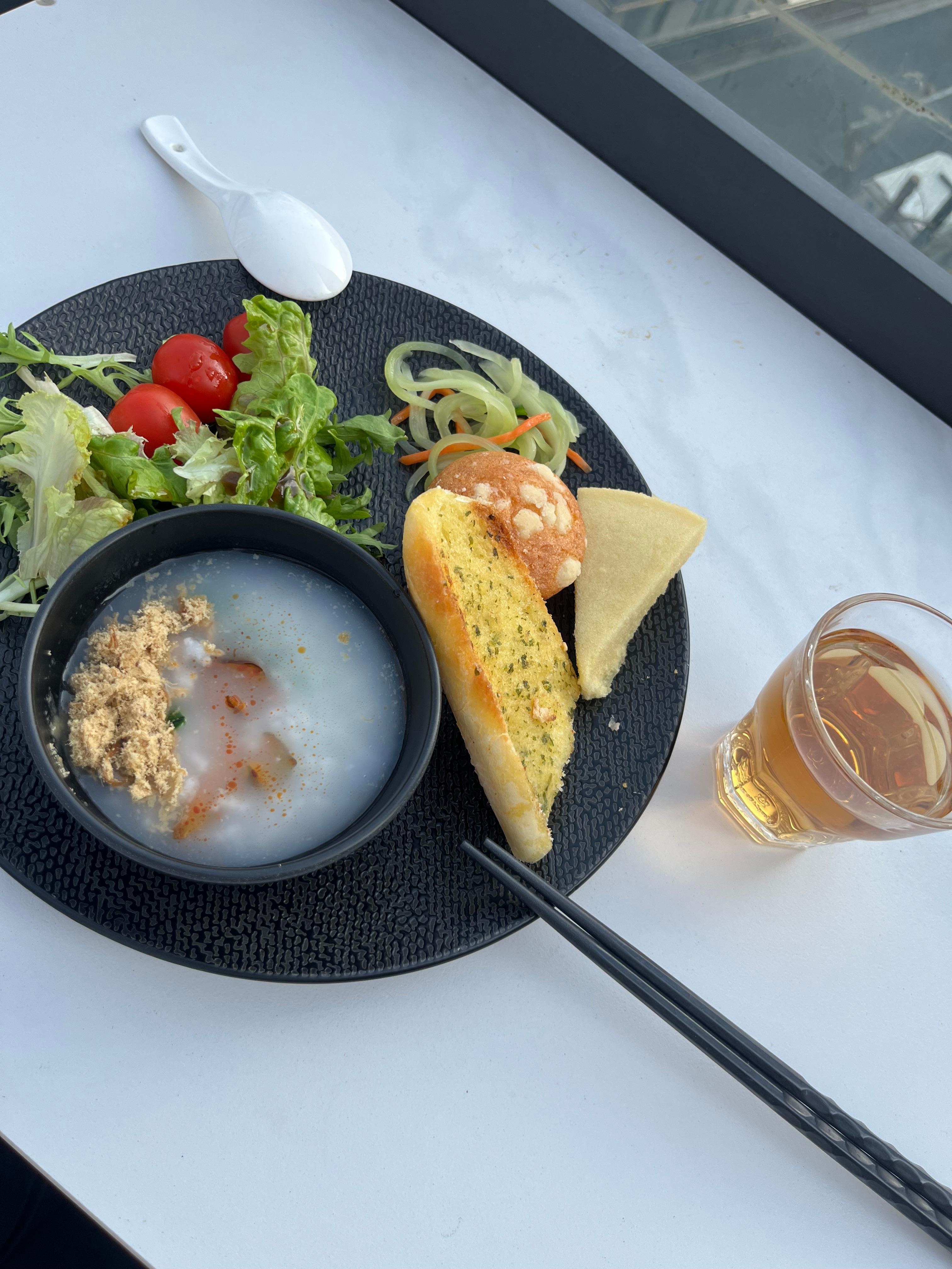 Setiap hari sarapan prasmanan tersedia pukul 07.00 hingga 10.00 dengan biaya: CNY 128 untuk dewasa dan CNY 64 untuk anak-anak