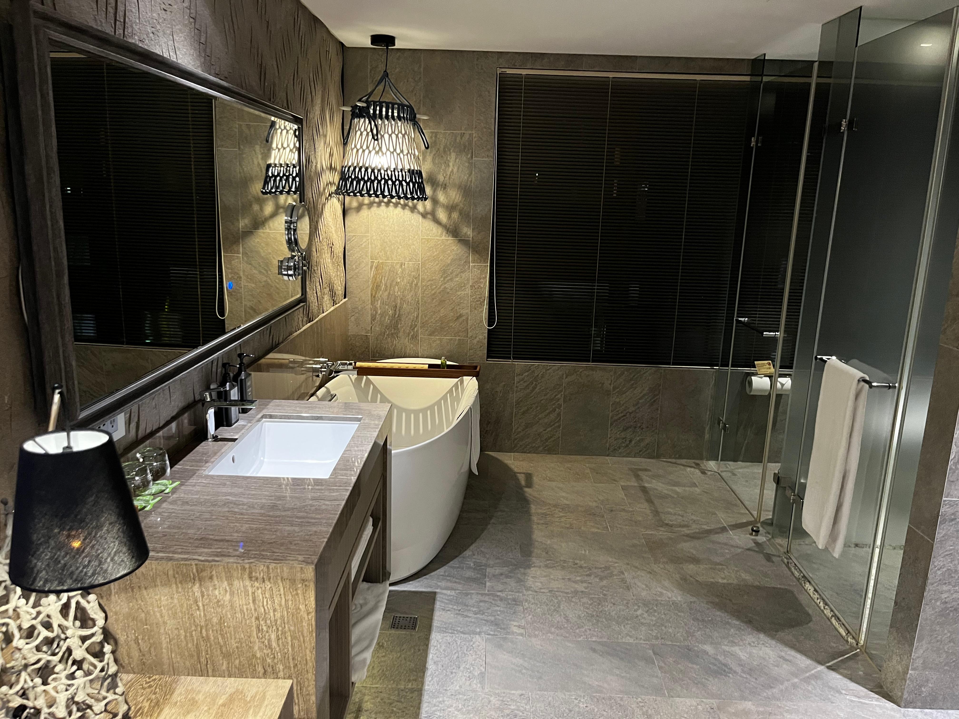 Bathrooms with rainfall showers and deep-soaking baths