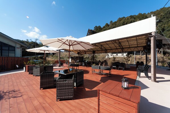 Kabin tepi sungai dengan restoran, dekat Kuil Kumano Hongu Taisha
