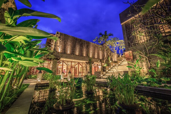 Tejaprana Bisma offers a tranquil escape near Ubud Monkey Forest. Travelers can relax at the poolside bar or book a Thai massage at Pejamata Spa. The on-site restaurant Arutala serves delicious meals, while designer stores provide unique shopping opportunities.