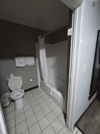 The shower was poorly designed, with the curtain cutting the space in half, and the water pressure was very weak. The bed was also uncomfortable.