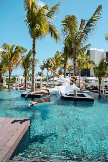 Adults-only paradise near Playa Mujeres Golf Club where guests enjoy poolside cabanas, spa treatments, and days that transition effortlessly into vibrant evenings