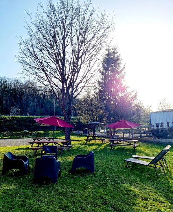 A peaceful garden retreat where travelers can unwind in a smoke-free environment with convenient parking and reliable connectivity options.