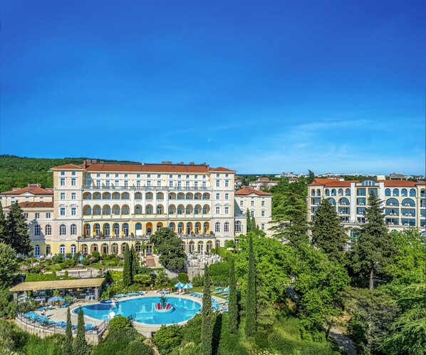 Hotel Kvarner Palace, by the sea, offers a luxurious escape with a complimentary breakfast buffet, a poolside bar, yoga classes, reflexology, massage treatments at the spa, on-site shopping, and a peaceful garden for unwinding.
