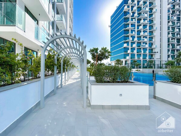 Fasilitas rekreasi lainnya di apartemen mencakup kolam renang outdoor.
