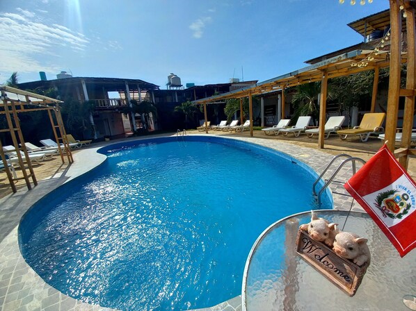 Mancora y Sol blends tropical atmosphere with modern convenience. Travelers enjoy continental breakfast on the sunny terrace or games in the arcade room. The outdoor pool provides a refreshing spot to unwind on sun loungers, while high-speed WiFi keeps everyone connected.