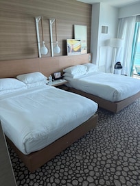 Our room was nice but not properly cleaned. There were loose peanut M&Ms scattered on the floor in the corner, which was concerning.