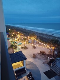 Ocean view was beautiful from our balcony. So nice to have a restaurant inside the hotel for delicious meals with available breakfast, lunch, and dinner. Beach chairs and beach umbrellas were furnished at beach for enjoyment. Large pool outside with hot tub were also available for enjoyment. We loved our first visit to Atlantic Beach and we loved our stay at Crystal Beach Oceanfront Hotel. Hotel front desk open around the clock for any needs. All rooms are ocean front.