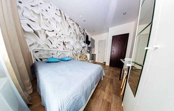 Apartemen di Novorossijsk dengan dapur kecil dan kasur busa memori