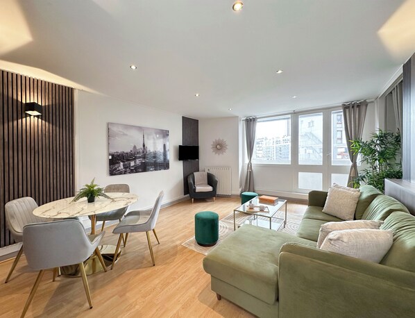 Family Apartment, Courtyard View | Living area | 80-cm Smart TV with digital channels - 1615 Quinet (Paris)