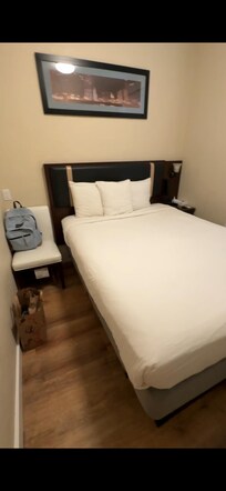Another odd detail: the room has a refrigerator and microwave, but there is no table or place to sit and eat, so it seems like you’re expected to eat on the bed.