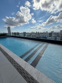 Hotel apartemen Gaya Art Deco dengan teras atap dan kolam renang outdoor
