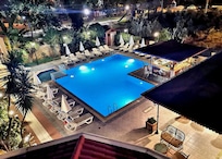 An outdoor pool and a children's pool are on site.