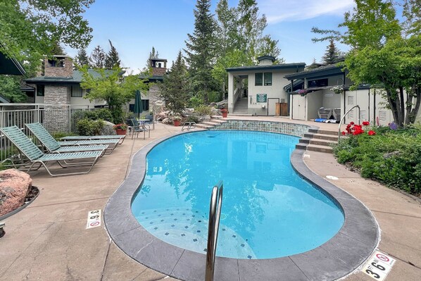 Kondominium pegunungan dengan kolam renang outdoor musiman, hanya beberapa langkah dari Gunung Snowmass