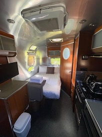 The cabin. Had all you would need and the bed was very comfortable including pillows.
