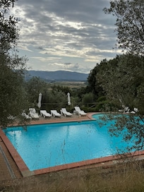 Accoglienza dei proprietari indifferente quasi scocciati Colazione tanto per giustificare che e’ stata servita 2 asciugamani per la piscina, ma restituiti, 10 euro . Posizione bella campagna toscana