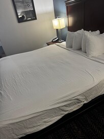 Not as new as photos made it look - at all. This is an old motel. Also, not as large as pictures. Overall, pretty run down for the Best Western name. Not what I expected from Best Western - the reason I trusted it. More in line with an outdated Super 8. The only part I would give 5 star is the back lit vanity mirror which was spotless too. Tub had no traction and was super slick. Shower curtain was white and a little dingy. Bedding was white and looked old and dingy. The pillows on the king bed were about 12" square (2 per person). King beds need king pillows - or at least 4 standard minimum. These tiny pillows were crazy. Roll over, and you fall off the pillow. Door had an old rusted chain security lock. Carpet was blue and hid the dirt but had a dirty "feel" to it. No "do not disturb" sign. I noticed one person had put a home-made sticker on their door for that. Outside: 2-story "motel". Concrete cracked and stained. Everything needs a good pressure wash and things in general need an update that just paint won't fix. Paid $350 per night for a normally $80 room (about what its worth) because of special event weekend every month they jack up the prices. At check-in, although friendly, they said if you want more towels, etc. you have to come get them because "we are short staffed".
