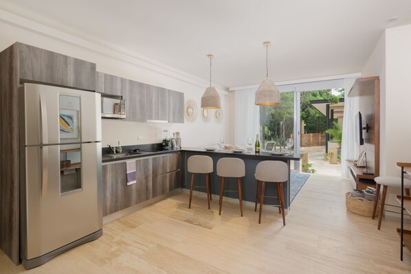 Deluxe Apartment, 1 Bedroom, Non Smoking | Private kitchen | Full-sized fridge, microwave, oven, stovetop - Casa Sol 1BR by the Pool - Attha Cenote (Tulum)