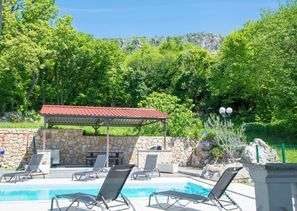 Recreational amenities at the holiday home include an outdoor pool.