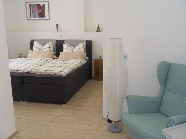 Wenn man das Nette Landhaus betritt, fühlt man sich sofort wohl. Das Haus ist sehr gepflegt, komfortabel und Durchdacht eingerichtet. Die Ausstattung der Gemeinschaftsküche lässt keine Wünsche offen. Es ist alles da, was man braucht… und mehr. Das Zimmer ist mit Liebe zum Detail eingerichtet.