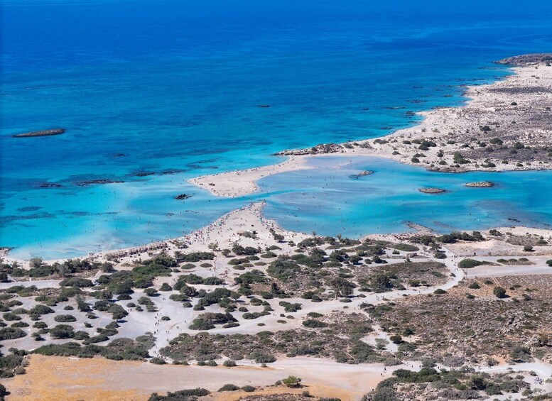 Lupakan stres saat berkendara melalui jalur pegunungan yang sempit. Armada kami yang modern dan ber-AC serta pengemudi yang ahli memastikan perjalanan yang aman dan indah. Kami mengoptimalkan jadwal kami untuk tiba di pantai lebih awal, membantu Anda mendapatkan tempat terbaik sebelum jam sibuk tiba. Petualangan Anda dimulai dengan penjemputan yang nyaman langsung dari hotel Anda atau titik pertemuan yang ditentukan dengan kendaraan AC modern kami. Pemandu kami yang ramah dan mampu berbicara dalam berbagai bahasa akan menyambut Anda dan memberikan gambaran umum tentang perjalanan Anda selama satu hari. Setibanya di sana, Anda memiliki waktu bebas selama 4 jam penuh untuk menjelajahi kawasan lindung Natura 2000 ini. Arungi perairan dangkal yang jernih untuk mencapai pulau kecil ini, berjalanlah melintasi garis pantai yang berwarna merah jambu, atau bersantailah di bawah sinar matahari Mediterania. Perairan laguna yang tenang dan hangat membuatnya ideal untuk keluarga dan anak-anak. Dalam perjalanan pulang, kami mengunjungi desa pegunungan tradisional Elos, yang terkenal dengan pohon kastanye yang rimbun. Di sini, Anda dapat menikmati makan siang otentik Kreta opsional di kedai lokal pilihan, menikmati cita rasa tradisional yang jauh dari jebakan khas.