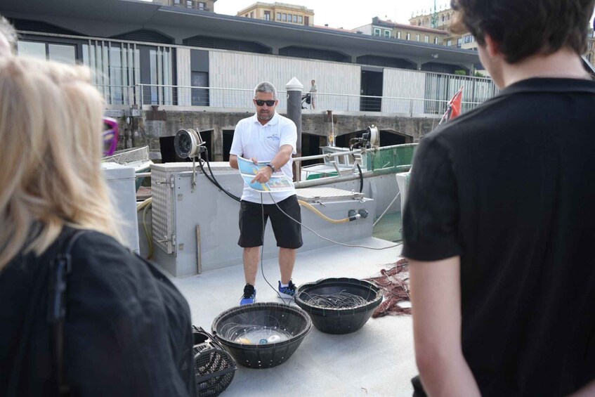 Durante esta visita subiremos a bordo del barco de bajura Isturiz I, barco profesional de pesca de bajura de la Kofradia Virgen del Carmen de Donostia, donde su patrón Borja Isturiz, nos mostrará los aparejos que está utilizando en la pesca de esa temporada, la tecnología que emplea en su día a día y los detalles de su profesión.