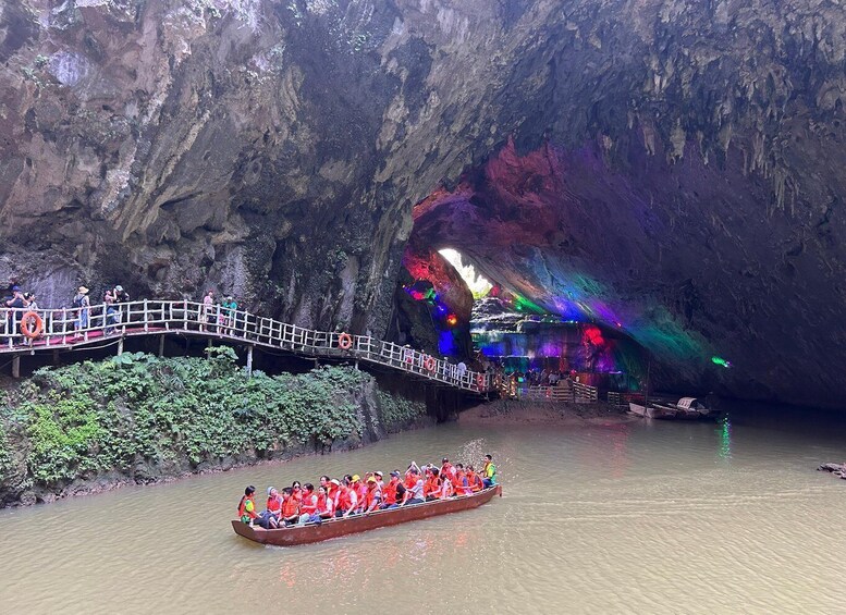 Selanjutnya Anda akan pindah ke Gua Chuantian atau Gua Fairland di mana air, gua, dan puncaknya membentuk sebuah gambar. Anda akan berjalan kaki ke gua untuk melihat bebatuan, lalu naik perahu untuk menikmati pemandangan sungai yang fantastis.