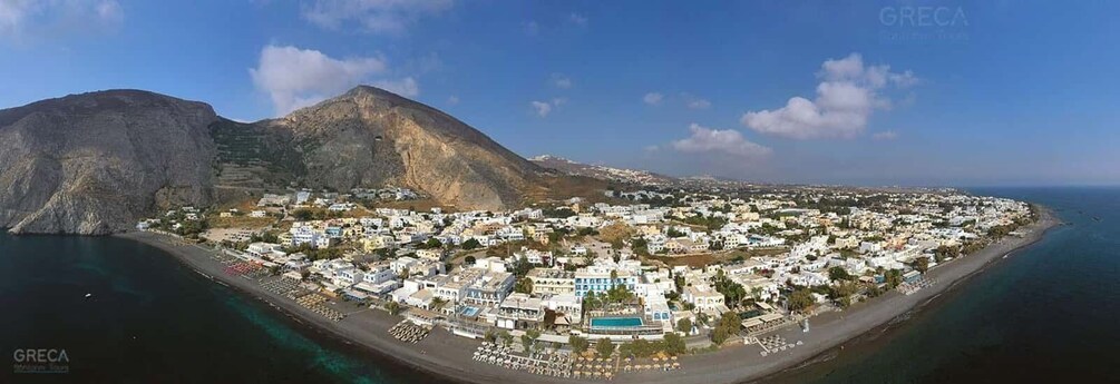 Your tour includes a visit to Perissa Black Sand Beach, where you can relax, swim, or enjoy a seaside coffee. You can choose to start or finish your tour at the beach — just let your guide know your preference.