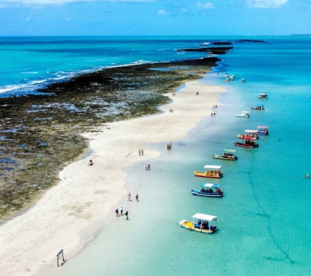 Embark on a full-day journey to the Croas de São Bento (Maragogi), a breathtaking reef area where sandbanks rise with the tide, creating a dazzling white landscape surrounded by shallow, crystal-clear waters.