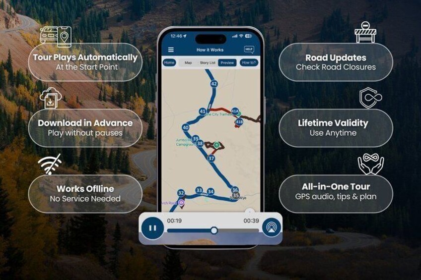 - Travel worry-free: Use the tour app anytime, on any day, and over multiple days. Start and pause the tour whenever you like, taking breaks and exploring side excursions at your own pace. Skip anything you don’t care about or explore bonus content for everything that interests you